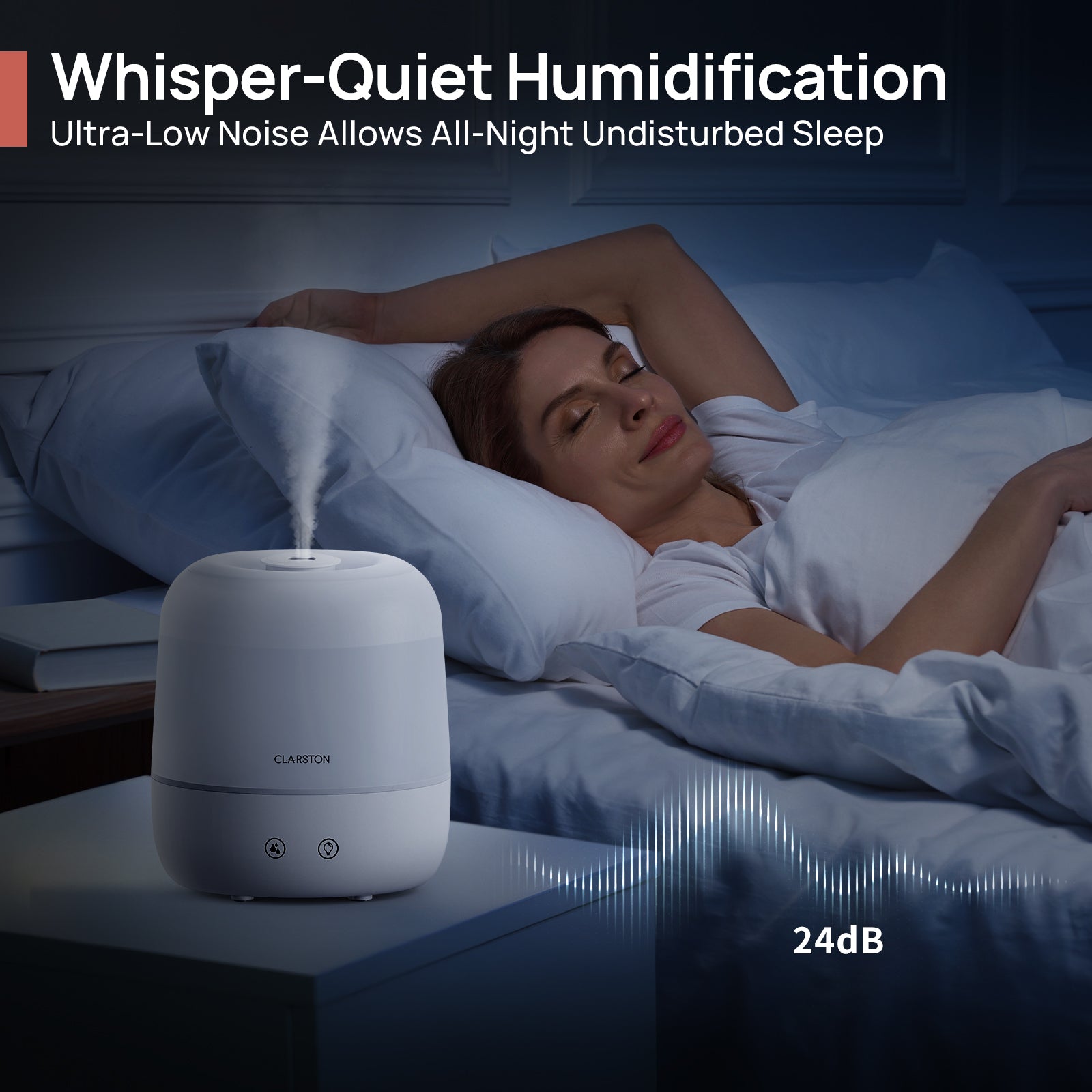 [Whisper-Quiet & Light-Off] Operating at ultra-low 24 db, and featuring a light-off design, the humidifiers for babies create a peaceful and silent atmosphere at night, allowing all-night undisturbed, restful sleep